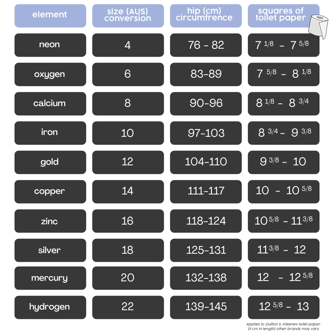 At continuall, we believe that everyone should feel confident and comfortable in their own skin. We understand that bodies come in all shapes and sizes, and our innovative sizing system embraces this diversity and also acknowledges the uniqueness of each individual.Say goodbye to traditional labelling by sizes and hello to alternate sizing system inspired by the periodic elemental chart. Our aim is to eliminate the stigma associated with sizing labels and provide a more engaging and empowering experience for our customers.